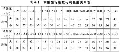 =0.66%的正誤差調整值為0.63%(從38/35向后),其調整齒輪為41/38齒,更換調整齒輪后,可將原來(lái)的誤差調整為